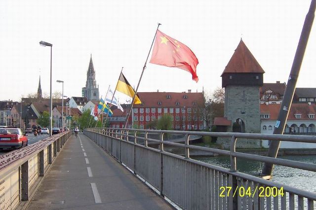 | 最近,康斯坦茨市中心的波澄湖桥上第一次出现了中国国旗 — 五星红旗,实现了在康市华人和许多德国朋友多年的愿望。[照片一] [照片二] Seit kurzem gehoeören zum ersten Mal auch chinesische Flaggen zu